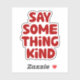 Esta design apresenta uma frase encorajando alguém a dizer algo gentil.
