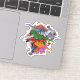 Esta design pré-histórica colorida inclui Tyrannosaurus Rex, Velociraptor, Giganotosaurus, Allosaurus, Apatosaurus, Pteranodon, Tricerátops e Parasaurolophus.