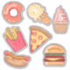 Estes adesivos são perfeitos para amantes de comidas de lixo. Nosso adesivo de comida de lixo apresenta sete de nossos próprios itens de comida de estilo cartoon desenhados à mão, incluindo um hambúrguer, batatas fritas, rosquinha, cachorro-quente, cone de sorvete e uma fatia de pizza. Os autocolantes são personalizados com nome e monograma para uma aparência personalizada única. Estes adesivos de comida de lixo do estilo cartoon são perfeitos para decorar e personalizar suas coisas, raspando e muito mais! Todas as ilustrações de trabalho de arte desenhadas à mão pela Moodthology.