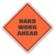 Um clássico cartaz de advertência de diamante laranja alerta o trabalho de duro à frente em uma espessa fonte de serifa negra. Um jogo de trocadilho com palavras de um símbolo clássico, trabalho de estrada à frente, perfeito para livros escolares, revistas, conselho de visão.