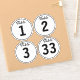 Indica os números de tabela DIY que você aplica ao seu próprio registro de vinil. Quatro etiquetas individuais impressas e cortadas de uma folha de 6"x6". Cada etiqueta tem cerca de 3" de diâmetro, o que deve cobrir a maior parte de uma etiqueta de registro típica de 7" e 45 RPM. A cor de fundo é a cinza clara. O acento do círculo e a cor do texto são pretos. Você pode alterar a cor do plano de fundo e as cores do texto. Clique em Personalizar e, em seguida, em "Editar na Ferramenta Design: