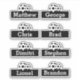 Um design divertido, moderno e legal, preto e branco, composto por bolas de futebol colocadas acima de uma banda preta horizontal na qual aparecem os convidados do aniversário de criança.