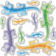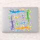 Ícone de lagarto colorido com formas tribais no corpo. Laranja, azul, verde e mauve. Folha de adesivos de balcão.