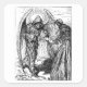 esta arte da morte em vintage é uma ilustração do Rubaiyat de Omar Khayyam por Edmund J Sullivan. aqui o sombrio/anjo da morte se aproxima de uma mulher que carrega um grande sangue coletor de uma caneca ou algum outro líquido sinistro escuro. alguns detalhes interessantes aqui incluem grandes asas de penas para a colher e um halo brilhante.