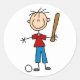 Um garoto com um taco de baseball e bola num adesivo personalizável.