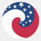 Uma espiral de cores de bandeira! Um círculo ao redor de ondas vermelhas e brancas se formando sob um campo estrelado de azul. Coloque este adesivo no seu computador, bicicleta, chapéu, porta, ligante...este adesivo parece bom em qualquer lugar!