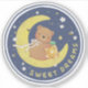 Uma bela ilustração de um ursinho de pelúcia segurando um pote de mel na lua com os textos "SONHOS DOCES"