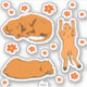 Bons desenhos animados, dormindo vizsla frente, trás, e furando adesivos cercados por pequenos adesivos de rabo vermelho.