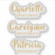 Limpe os adesivos personalizados vinil com nomes individuais de solteiro com script de caligrafia dourada; fácil de editar com cada um dos nomes das suas damas de Bridesmaids. Útil para muitos projetos de casamento, como favores DIY, óculos, cartões de lugar, convites/envelopes, basta escolher o tamanho da folha para atender às suas necessidades.