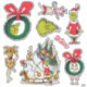 Esta folha de autocolante do Dr. Seuss apresenta 8 decalques com Grpolegadas, Cindy-Lou Who e Max.