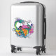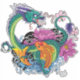 Dragão chinês verde e púrpura com peixe koi laranja, flores de lótus, cereja floresce água contra pano de fundo azul