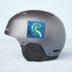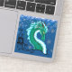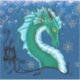 Retrato do perfil do dragão azul, verde e lacrimogênio com neve caindo por toda a parte. Rosa preto tribal.