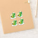 Conjunto de quatro adesivos vinílicos cortados com uma ilustração de um dragão verde giro guardando um tesouro; motivos de animação de fantasia para crianças; com modelo de texto personalizado para o nome do seu filho ou mensagem personalizada