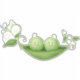 Possuindo possivelmente as ervilhas mais bonitas da terra, estas duas ervilhas em uma vagem trazem certamente um sorriso/ Pequenas flores brancas e verde decoram a fronteira.