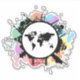 É a ilustração viagem com mapa mundial e decoração de locais históricos em fundo de tons de cinza coloridos
