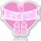 Um autocolante personalizado único para novos pais. Bonita e adorável presente de chá para a menina: Coração rosa com um arco, calçados cor-de-rosa, faixa e texto É uma menina!