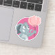 Um adesivo de vinil recortado personalizado com uma ilustração de uma menina elefante fofa com balões cor-de-rosa; animações de animação para crianças