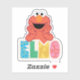 Esta fofa design da Sesame Street mostra Elmo inclinado em texto Elmo divertido. © 2021 Sesame Workshop. www.sesamestreet.org
