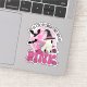 Decorem o vosso mundo com isto Em outubro Vestimos o adesivo rosa do Dia das Bruxas! Apresentando um fantasma fofo em um chapéu de bruxa voando sobre uma vassoura rosa através de uma lua de rosa claro com morcegos, é uma maneira divertida de espalhar conscientização e positividade em outubro. Perfeito para laptop, garrafas de água, diários e muito mais.