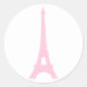 Uma ilustração simples e clássica de uma Torre Eiffel cor-de-rosa num fundo branco decora este adesivo.