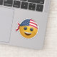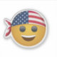 Este design de adesivo apresenta uma alegre face amarela emoji com um sorriso grande e amigável. O emoji está vestindo uma bandeira na moda americana bandana, com as estrelas e listras claramente exibidas, amarradas em volta da cabeça de forma legal. As cores vibrantes, vermelhas, brancas e azuis da bandana contrastam bem com o amarelo brilhante dos emoji, criando uma vibração divertida e patriótica. Perfeito para expressar positividade e orgulho nacional, esse adesivo é um acessório excelente para laptop, garrafas de água ou cadernos.