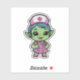 Traga um pouco de cuidados intergalácticos para sua coleção. Este adesivo apresenta uma pequena enfermeira de alienígena bonitinha num uniforme, com um estetoscópio à volta do pescoço. Perfeito para laptop, garrafas d'água, ou cadernos de anotações, é uma maneira divertida de mostrar seu amor por heróis de saúde e todas as coisas extraterrestres.