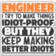 Engenheiro Engraçado Diz "Engenheiro Eu Tento Fazer Coisas Idiotas Provas Mas Elas Mantêm Fazeres Melhores Idiotas". Agarre este design Engraçado como um presente engraçado para uma mãe, pai ou amiga espetacular.