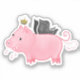 Um adesivo engraçado de porco com uma ilustração cartoon de um desses animais divertidos como uma fada com asas e coroa. E está peidando.