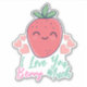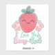 Um morango de desenho engraçado com o sorriso mais bonito, um rosto vermelho e folhas verdes em cima com corações de amor rosa acima. Abaixo da baga em cor-de-rosa pastel e texto verde estão as palavras Eu te amo Berry Much. Ideal para aqueles que amam bagas e trocadilhos.