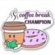 Leva o teu café para o próximo nível com o nosso encantador autocolante "Café Break Champion"! Apresentando uma xícara de café de repouso contra uma rosquinha deliciosa enquanto desfruta de um bom livro, este adesivo é perfeito para amantes de café e para livreiros. Feito de vinil resistente e impermeável, é ideal para decorar laptop, garrafas de água, cadernos e muito mais. Mostre seu amor pelo café e lendo com este adorável adesivo!