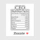 Engraçado CEO Nutrição Fatos, Presente para CEO, Empreendedores Sticker