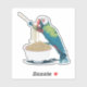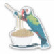 Ilustração de um papagaio engraçado comendo macarrão Ramen com paus.