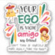 Adesivo Engraçado, seu EGO é o texto personalizado NACHO A