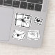 Esta folha de quatro adesivos brancos com gráficos pretos tem um pacote de cartas amarradas, um envelope de carta com um beijo, swak, dois envelopes empilhados e um selo de coração de amor. Perfeito para scrapbooking, artesanato ou decorar um caderno ou laptop.