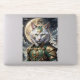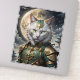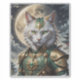 Esta imagem impressionante apresenta um gato antropomórfico vestido de ornamentado verde e armadura dourada. O gato, com pelo branco e marcas marrons, tem olhos verdes piercing que somam sua presença mística. Uma grande joia verde enfeita o centro de sua peça no peito, destacando as intrincadas designs da armadura. Colocada sobre um pano de fundo de uma lua grande e cheio e um céu noturno cheio de nuvens e estrelas, a cena também inclui prédios tradicionais ao estilo asiático, aprimorando a atmosfera fantástica e imersiva. Esta trabalho de arte combina perfeitamente elementos de fantasia e estética cultural, fazer-a uma peça cativante para entusiastas da arte e amantes da fantasia.