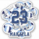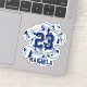 Este adesivo espiritual de vôlei da equipe para meninas ou meninos apresenta a imagem de um bando de volebolas azuis, azuis e brancas de tamanho variado, sobre as quais você pode personalizar o nome do atleta, número de camisa, nome da equipe e nome do mascote - por katz_d_zynes