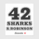 Autocolantes personalizados de jogadores esportivos personalizados com o número de jogador, o nome do jogador e o nome do time! Projetado em tipografia ousada e legível em slab-serif. Ideal para qualquer esporte para crianças, estudantes e adultos. Ordem a granel para etiquetas de capacete, garrafas de água, etc. Digite os dados do jogador para cada ordem do adesivo. Se necessário, altere a fonte, a cor ou o tamanho digitando a Ferramenta Design Zazzle, realce as camadas e edite para atender às suas necessidades. Verifique o tamanho do adesivo antes de fazer o pedido. Veja a minha coleção de autocolantes personalizada para mais autocolantes personalizados.