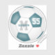 Esta equipe colorido adesivo de futebol para meninas ou meninos apresenta a imagem realista de uma bola de futebol que tem painéis brancos e teais - personalize o nome do jogador, o monograma e o número de camisa - por katz_d_zynes