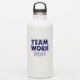 Vinheta de trabalho em equipe com uma fonte azul escura e um gráfico em grupo para inspirar ou recompensar trabalho em equipe e cooperação entre funcionarios, jogadores de equipes esportivas, funcionários ou estudantes.