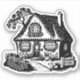 Uma ilustração simples e plana do estilo gráfico preto de uma velha e esquisita cabana casota rustica no campo.
