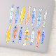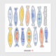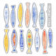 Peixes coloridos em tons de azul, laranja e amarelo. Inspirados pelas sardinhas mediterrânicas e pela design escandinava, estes são o perfeito pop de cor para qualquer das suas artes ou papelaria favoritas. 13 autocolantes de peixe numa só folha. Mão pintada por Heidi Horchler.