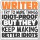 Escritor Engraçado Diz "Escritor Eu Tento Fazer Coisas Idiotas Provas Mas Eles Mantêm Fazer Melhor Idiotas". Agarre este design do Escritor Engraçado como presentes engraçados para uma mãe, pai ou amigo espetacular.