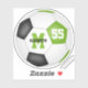 Esta equipe colore adesivo de futebol para meninas ou meninos apresenta a imagem realista de uma bola de futebol que tem painéis verdes, pretos e brancos brilhantes - personalize o nome do jogador, o monograma e o número de camisa - de katz_d_zynes