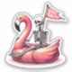 Este adesivo apresenta um esqueleto brincalhão navegando num barco flamingo cor-de-rosa, acompanhado por uma bandeira que orgulhosamente declara "Fica com Salgado".