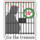 Esta é a época de traição para presentes políticos engraçados para homens e mulheres liberais nos EUA. Silhueta de gordura POTUS 45 Trump em uma cela de prisão decorada com luzes de Natal, uma coroa de férias e um martelo e foice russos. Natais vintages com a aparência da placa. Faça o excelente de Natal de novo com este adesivo engraçado de Donald Trump na cadeia.