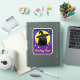 Adicione seu slogan a um divertido e festivo Halloween bruxa pintada cheio roxa vibes roxas assustadoras temporada assustadora Outubro assustadoramente assustadora gatinho de arte personalizável amor feitiço adoração de adereço deluxe hora. Compre um adesivo de arte de gato preto divertido hoje.