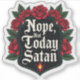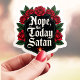 Mantenha as más vibrações longe com este adesivo Estilo Escudo Não Hoje Satanás com texto gótico em negrito, rosas vermelhas e um pequeno sotaque flamejante. Perfeito para laptops, copos, diários ou qualquer espaço que precise de uma atitude de fé. Impresso em vinil premium com detalhes nítidos e acabamento brilhante. Faz um ótimo presente para amigos ou um lembrete diário para permanecer forte e centrado. Porque alguns dias você só precisa dizer não.