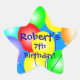 Um adesivo em forma de estrela para a estrela do dia! Um brilhante e divertido buquê de balão colorido pronto para você se personalizar com qualquer nome e idade de aniversário. Mostra-se "Aniversário de 7 do Robert!" Um excelente especial, divertimento e adesivo colorido!