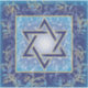 Uma bela estrela do adesivo de David em tons de azul, cercada por ornamentado. Perfeito para selar envelopes ou presentes para convites e festas judeus.