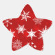 Flocos de neve brancos e vermelhos sobre fundo vermelho em adesivos fofos em forma de estrela. Excelente para selos de envelopes ou para a confecção.